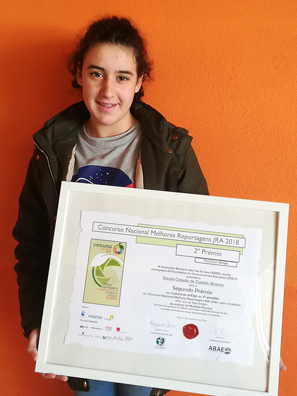 “Por um Rio Tejo Limpo” foi a reportagem que permitiu à aluna Mafalda Martins Paulino, do 9º D, obter o 2º lugar no Concurso Nacional ...