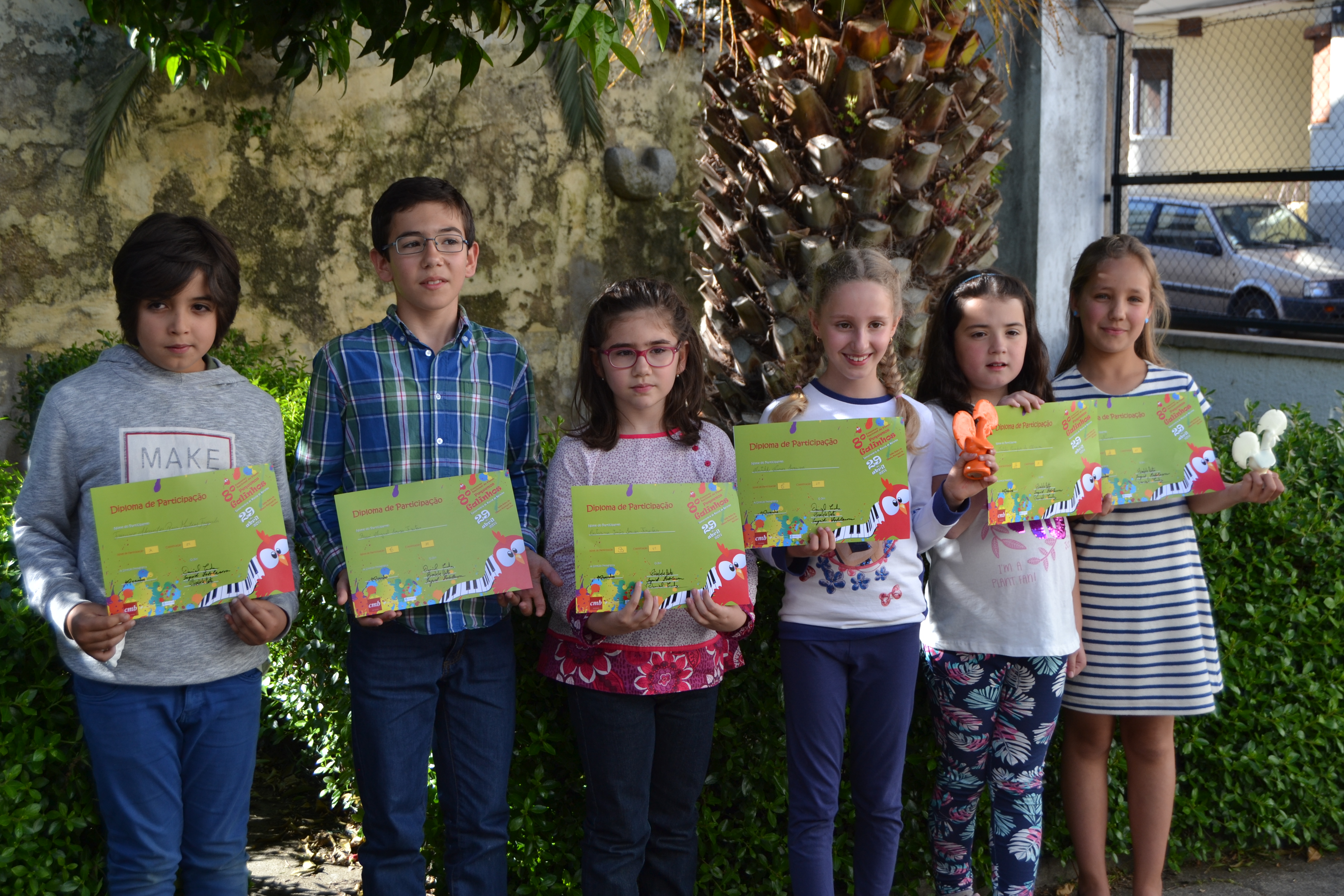 Cinco dos seis alunos de piano que a Academia de Música e Dança do Fundão levou ao concurso nacional de piano “Pequenos Galinhos” em B...