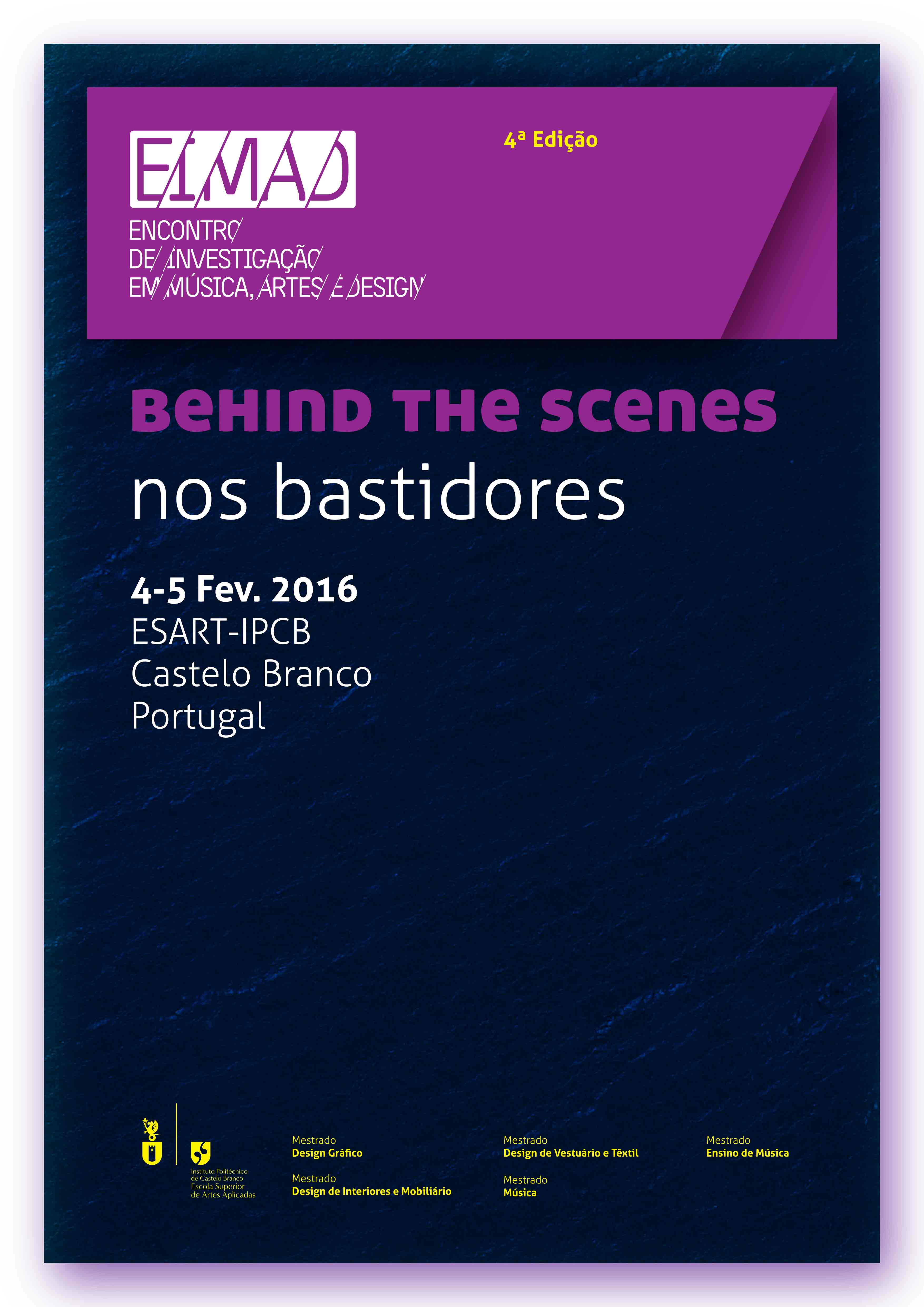 O 4º EIMAD – Encontro de Investigação em Música, Artes Design realiza-se nos dias 4 e 5 de fevereiro, na Escola Superior de Artes Apli...