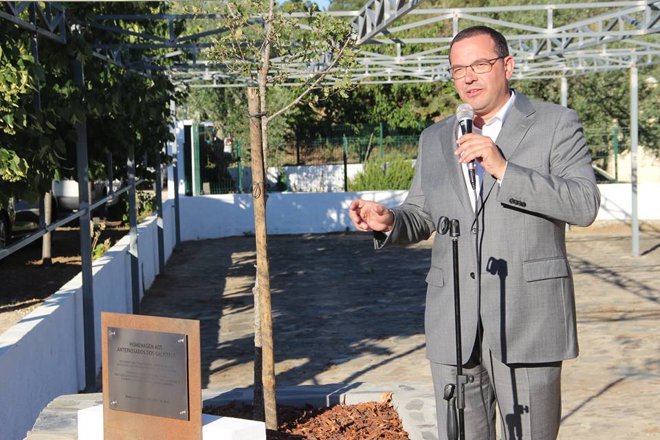 Uma azinheira e uma placa de “Homenagem aos Antepassados dos Galisteus” perpetuam a memória dos “homens que trabalhavam os campos de s...