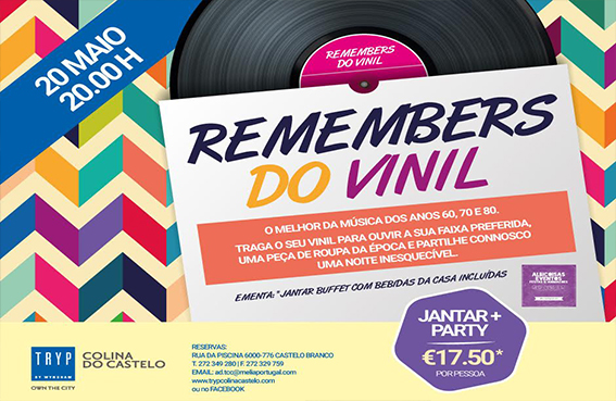 O Tryp Colina do Castelo convida todos os albicastrenses a participar na festa “Remembers do Vinil”, na próxima sexta-feira, dia 20, u...