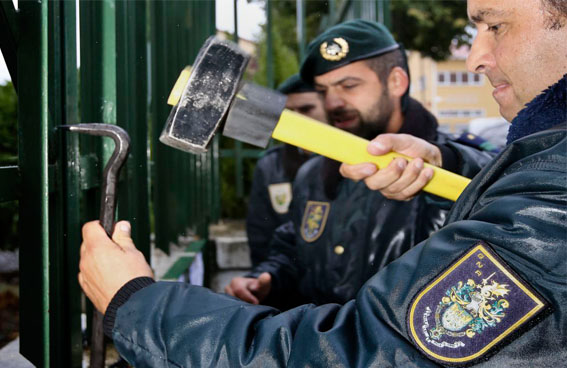A mesa de voto na Escola da Erada, concelho da Covilhã, abriu às 09:15 horas, depois de a GNR ter retirado, às 08:40, o cadeado que im...