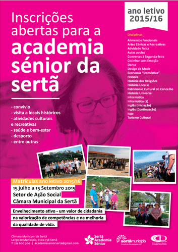 Estão a decorrer as matrículas para alunos na Academia Sénior da Sertã nas disciplinas: Alimentos Funcionais, Artes Cénicas e Recreati...