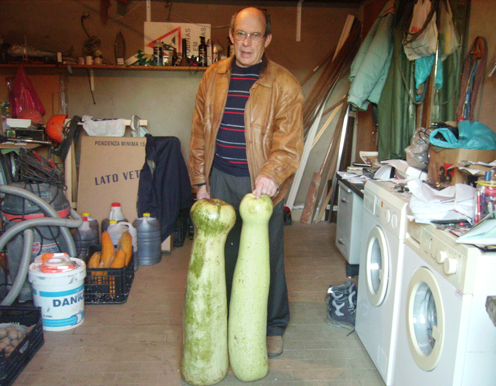 83 cm cada uma, é o tamanho destas duas cabaças. De umas sementes atiradas para o quintal da Dª. Vanda, na Rua do Monte do Meio, em Re...