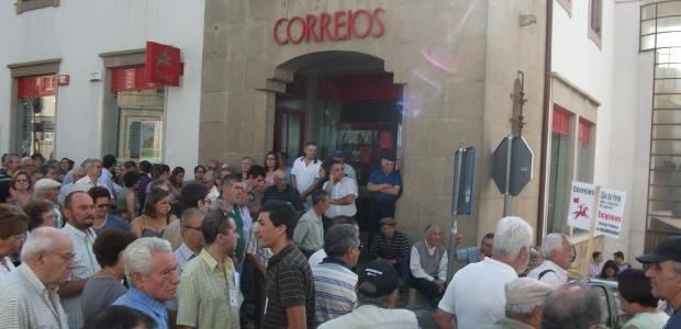 Dezenas de pessoas protestaram hoje contra a transferência da estação de correios do Tortosendo, Covilhã, dos CTT para a junta de fregues...