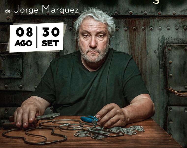 “Estão em exposição 15 esculturas selecionadas pelo autor que apresentam diversos instrumentos musicais (violas, guitarras, saxofone, pia...