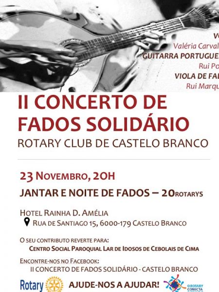 O Rotary Club de Castelo Branco vai organizar o II Concerto de Fados Solidário, que incluirá jantar, no próximo dia 23 de novembro. O ...