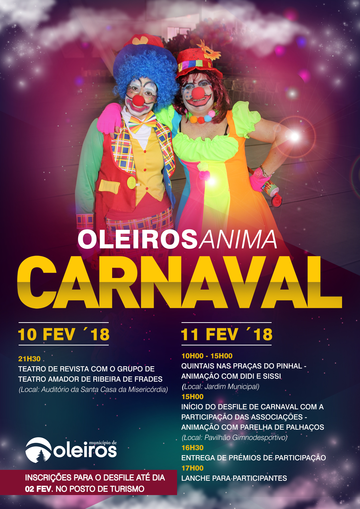 Estão abertas até ao dia 2 de fevereiro as inscrições para o Desfile de Carnaval. Os interessados devem inscrever-se no Posto de Turis...