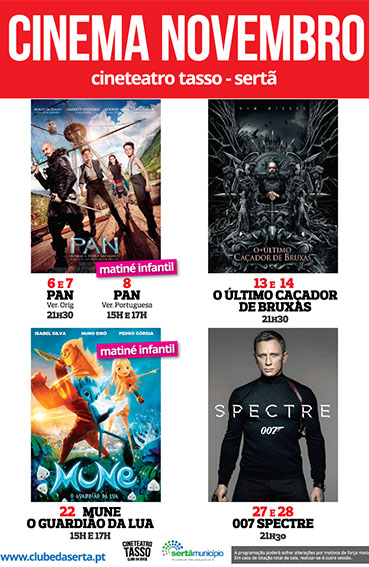 Esta é a lista dos filmes em exibição no Cineteatro Tasso do Clube na Sertã, durante o mês de novembro. Dias 6 e 7 - (21:30 ...