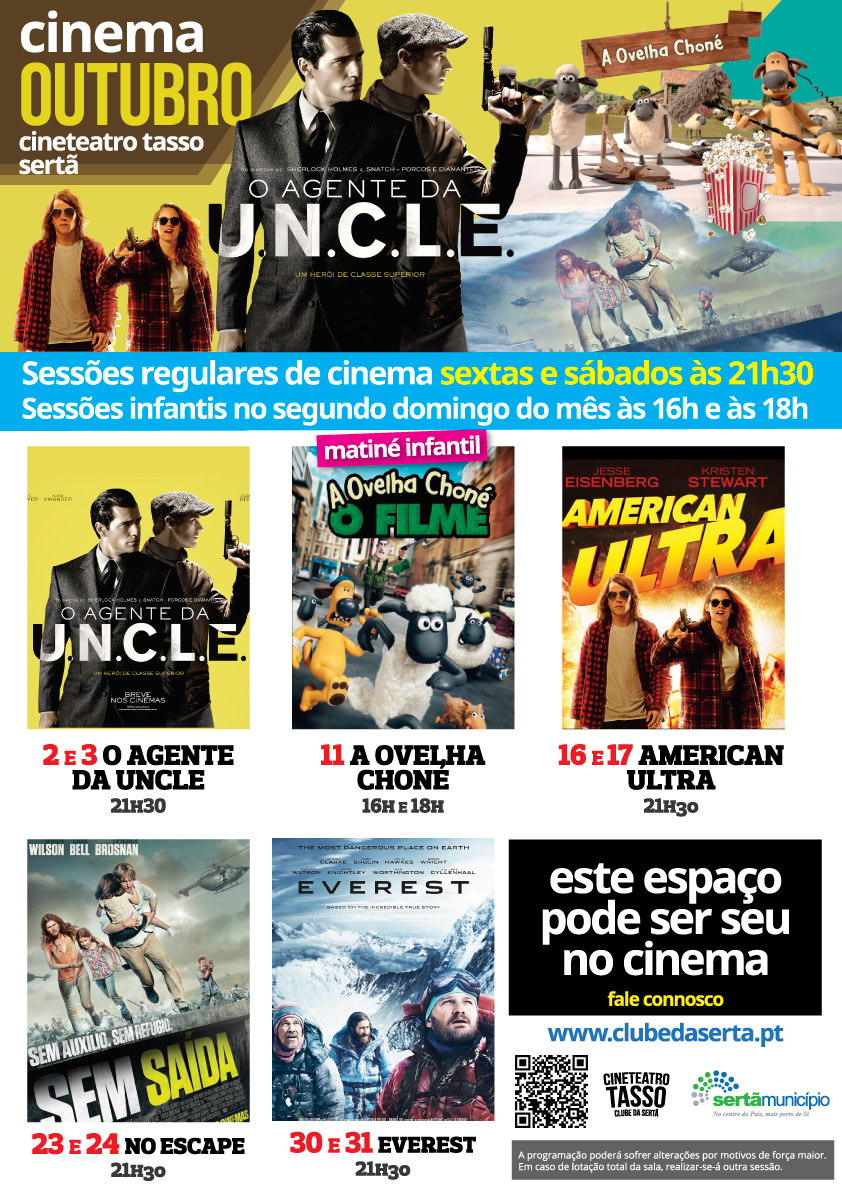 A programação de cinema do mês de outubro no Cineteatro Tasso do Clube é a seguinte: DIA- FILME- 2 e 3 (...