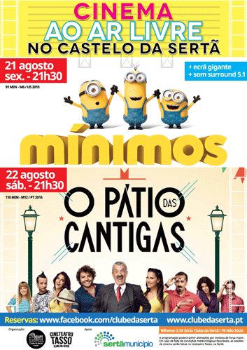 O Cineteatro Tasso do Clube da Sertã, com o apoio do Município da Sertã, promove dois dias de cinema ao ar livre. As sessões reali...